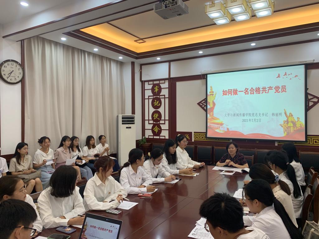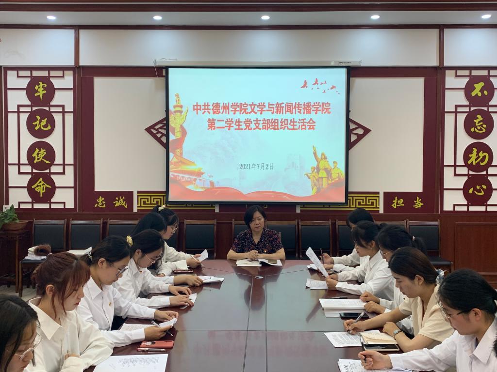 文学与新闻传播学院紧紧围绕“学党史、悟思想、办实事、开新局”主题,为认真贯彻“学史明理、学史增信、学史崇德、学史力行”要求,2021年7月2日晚,中共德州学院文学与新闻传播学院第一、第二、第三学生党支部组织全体党员召开党史学习教育专题组织生活会。文学院党总支负责同志认真履行“一岗双责”,积极参加各自联系党支部的组织生活会进行莅临指导。