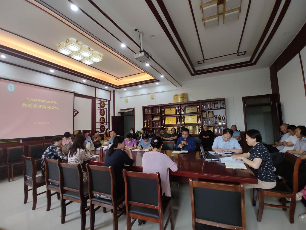 近日,文学院党总支组织开展师德师风专题教育,学院主要负责人做题为《加强师德师风建设 服务教师成长发展》的主题报告,学院全体教职员工参加学习。
