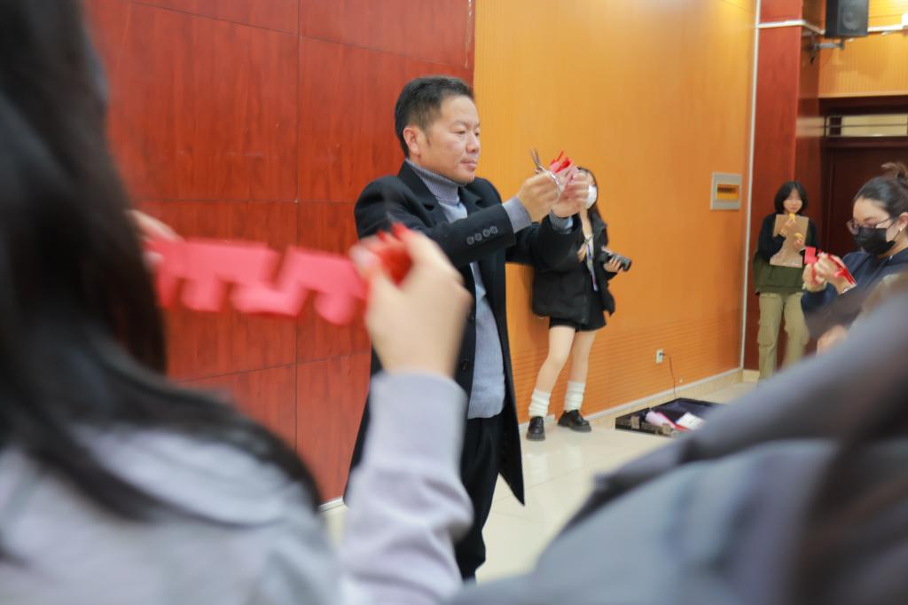 此次活动旨在增进德州学院中国学生与留学生的友谊交流,同时展示中国优秀传统文化的魅力。活动开始,23汉教的同学们轮流献上精彩的演出,一首《最炫民族风》让现场气氛高涨,中国古代文化吟诵《一剪梅》等节目让现场的观众感受到了中华文化的独特魅力,同学们收获满满。随后,剪纸非遗传承人张建志老师和他的助理徐延芳老师向全体参与活动者展示了复杂美丽惟妙惟肖的剪纸作品,同学们积极地向老师提问,现场互动格外活跃,同时他们还体验了如何编织中国结,体验之余,《你画我猜》《abcd》《大小西瓜》等游戏依次展开,同学们在活动中展现才华和热情,也在互动中加强与各国青年的友谊交流。
