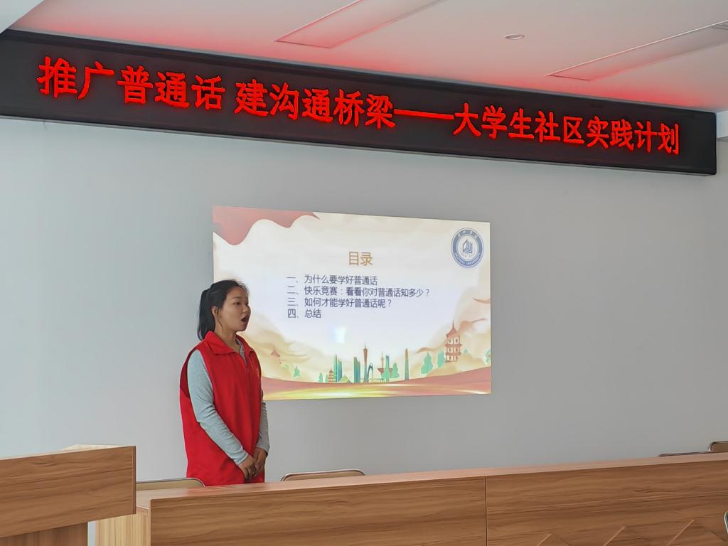 为积极推广和规范使用国家通用语言文字,增强居民的语言规范意识,提高对语言文字重要性的认识,营造良好的语言环境,5月16日,德州学院文学与新闻传播学院汉语言文学专业2022级4班团支部走进德城区广川街道小东关社区开展“推广普通话,建沟通桥梁”主题大学生社区实践活动。