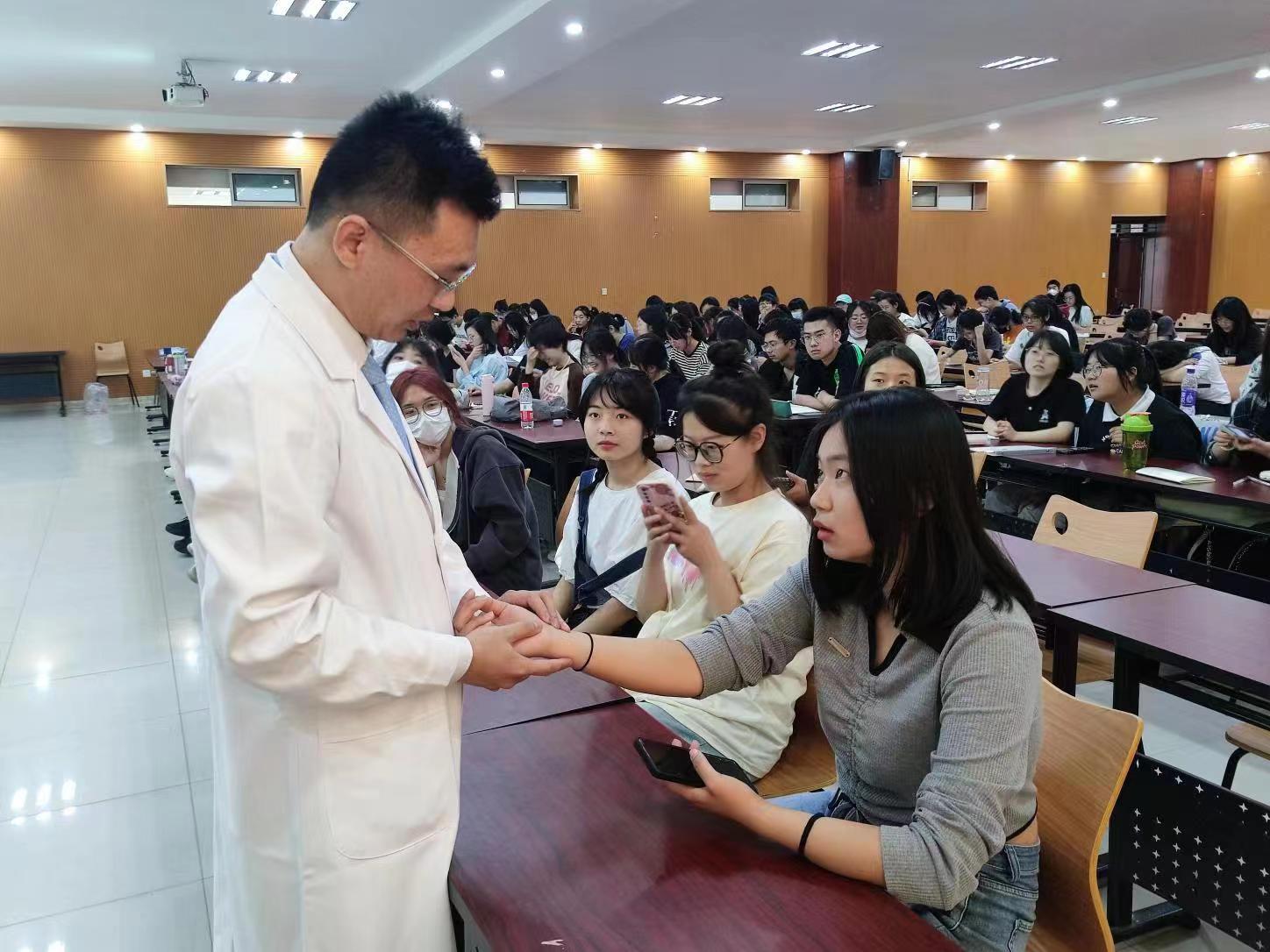 李成伟医师执业十余年,全国名中医专家传承工作室骨干成员,德州市首届卫生与健康杰青人才,从业经验丰富。他从真实的临床病例出发,针对当代大学生不良生活习惯引发的诸多问题,向同学们讲解了其危害,从传统中医角度出发,警醒大学生们要法于天地,合于阴阳,食饮有节,起居有常,重视身体健康,养成良好的生活方式。讲座最后,李医师现场为同学们诊脉,讲解,得到了同学们的广泛参与和普遍好评。