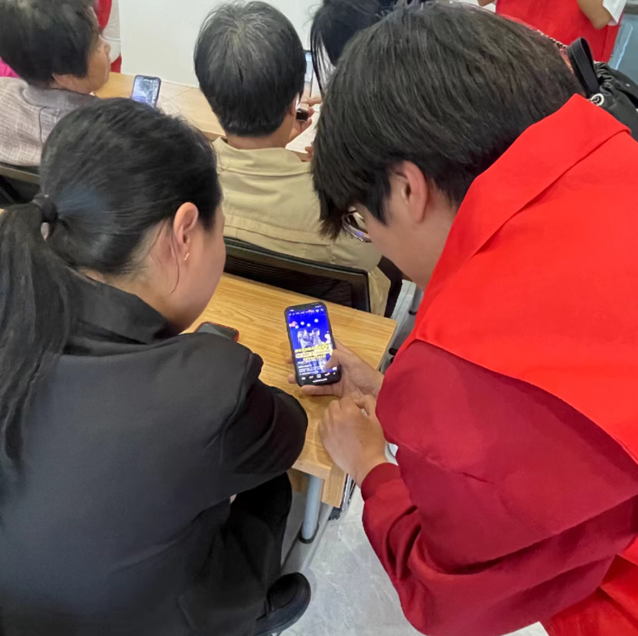 活动中,志愿者们教授银龄居民手机app“抖音”的使用方法,使其通过短视频的方式来记录生活中的美好瞬间。此外,针对对于文学创作较为感兴趣的老年人,志愿者们手把手的教授老年人使用智能手机制作“微信公众号”、“美篇”。这些智能手机的多样化操作,不仅丰富了他们的文化生活,也增强了他们使用数字技术的信心和兴趣。