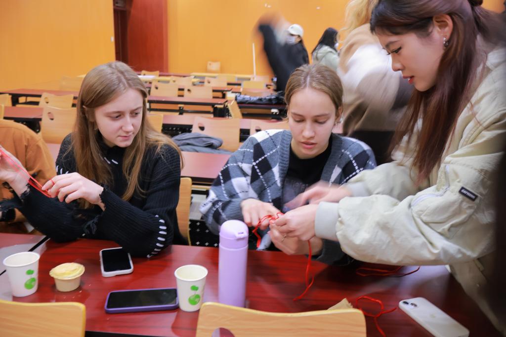 此次活动旨在增进德州学院中国学生与留学生的友谊交流,同时展示中国优秀传统文化的魅力。活动开始,23汉教的同学们轮流献上精彩的演出,一首《最炫民族风》让现场气氛高涨,中国古代文化吟诵《一剪梅》等节目让现场的观众感受到了中华文化的独特魅力,同学们收获满满。随后,剪纸非遗传承人张建志老师和他的助理徐延芳老师向全体参与活动者展示了复杂美丽惟妙惟肖的剪纸作品,同学们积极地向老师提问,现场互动格外活跃,同时他们还体验了如何编织中国结,体验之余,《你画我猜》《abcd》《大小西瓜》等游戏依次展开,同学们在活动中展现才华和热情,也在互动中加强与各国青年的友谊交流。