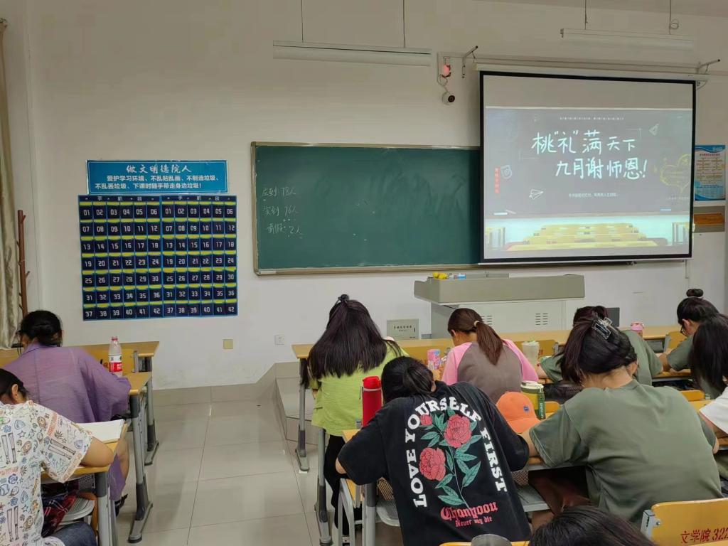 金秋九月,空气中弥漫着感念师恩的情绪,“尊师重教”是永远的美德。在教师节来临之际,为了使老师们愉快、充实的度过这个教师节,2023年9月10日,文学与新闻传播学院特此举办“花香伴书香,金秋谢师恩”教师节系列活动。希望通过形式多样,丰富多彩的活动,使每位同学由衷的表达对老师的感恩之情,向老师表达敬意,感谢老师的辛勤工作。