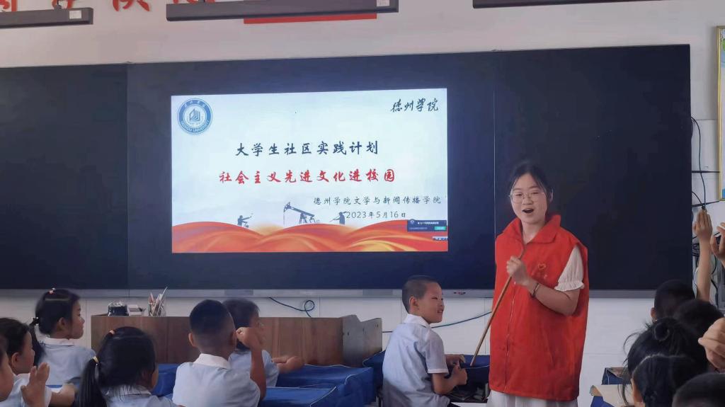 为深入学习宣传贯彻习近平新时代中国特色社会主义思想和党的二十大精神,引领同学们更好地了解社会主义先进文化以及诗文朗诵的相关知识,领悟朗诵魅力,5月16日,德州学院文学与新闻传播学院社会主义先进文化宣讲团走进德州学院附属第一实验小学开展大学生社区实践活动。
