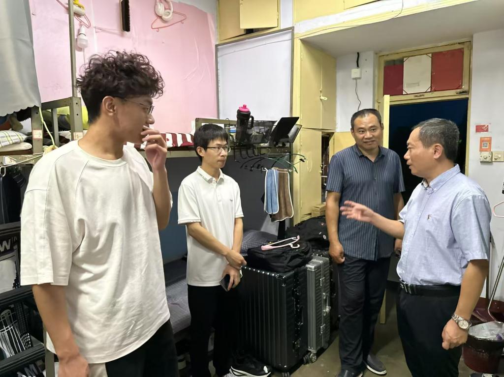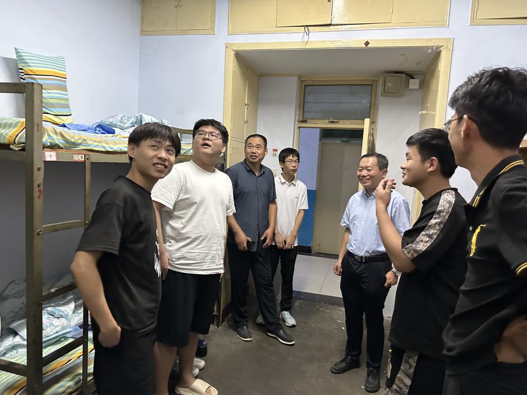 为帮助新生尽快适应大学生活,表达学院对广大学子的关怀与问候,9月1日,а√最新版天堂资源在线领导班子走进学生宿舍,与新生面对面交流。学院党委书记仲冲,副书记、副院长黄传波,副书记鞠晶晶集中走访了新生宿舍,全体辅导员老师进入宿舍进行关心慰问。