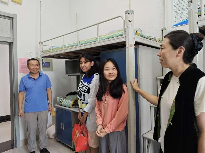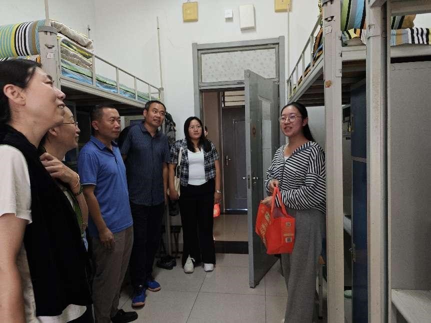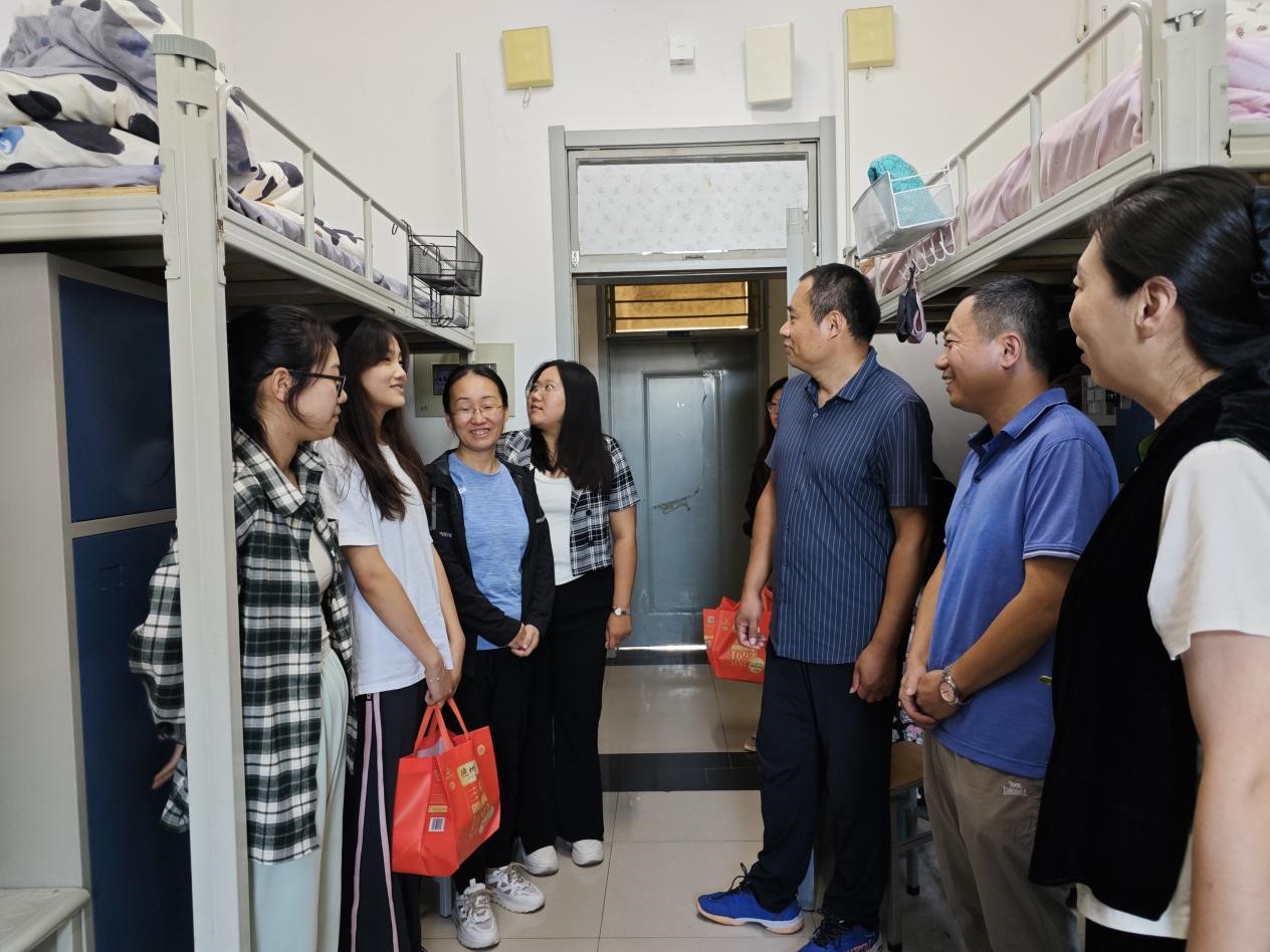 9月16日下午,а√最新版天堂资源在线党委书记仲冲、党委副书记、副院长黄传波、党委副书记鞠晶晶、24级辅导员李晓燕、辅导员沙彦君来到学生宿舍,耐心询问同学来校后的生活和学习情况,是否适应鲁西北的饮食与气候,中秋节想不想家。同学们纷纷谈了她们各自的入学感受,对学校、学院为学生的学习、生活提供的便利条件表示感谢,对老师无微不至、春风化雨的关心表示感动,决心提升自身综合素质,学好专业技能,秉承崇德启智励志博学的德院精神,积极进取。