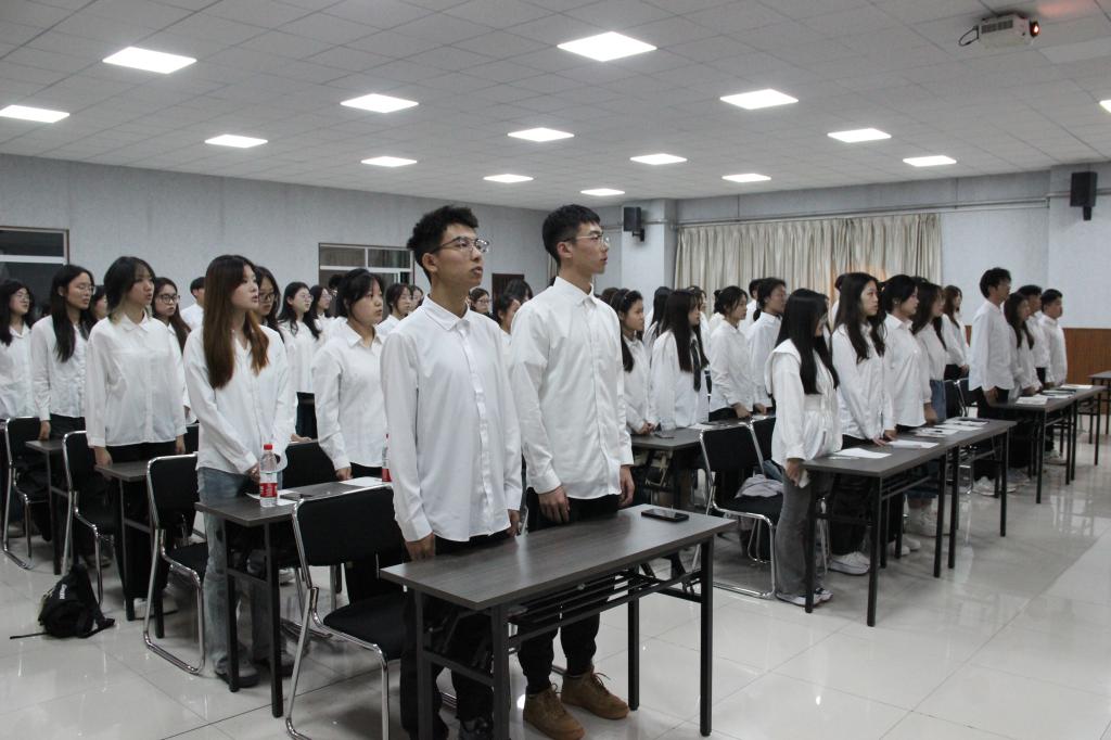 仪式第一项,全体起立,奏唱中华人民共和国国歌,仪式在庄严的国歌声中拉开帷幕。学院团委书记张亮致辞,学院高度重视“青马工程”培训班,希望学员深刻理解在强国建设、民族复兴的新征程上实施“青马工程”的重大意义,认真学习领悟贯彻培训班学习内容。辅导员沙彦君宣读а√最新版天堂资源在线青年马克思主义者培养工程大学生骨干培训班(2024年)参训人员名单。