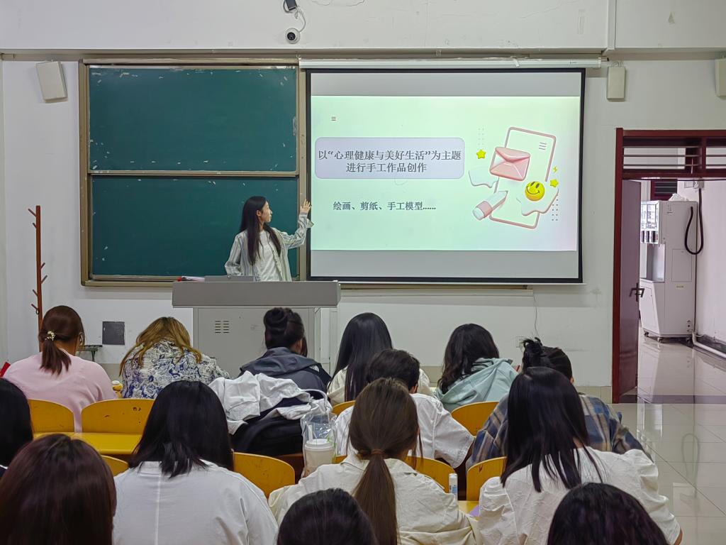 随后,活动进入到以“心理健康与美好生活”为主题的手工创作环节。同学们纷纷发挥自己的创意和想象力,将自己对心理健康与美好生活的理解融入到手工之中,作品极具创意,展现出积极状态下的美好生活画卷。
