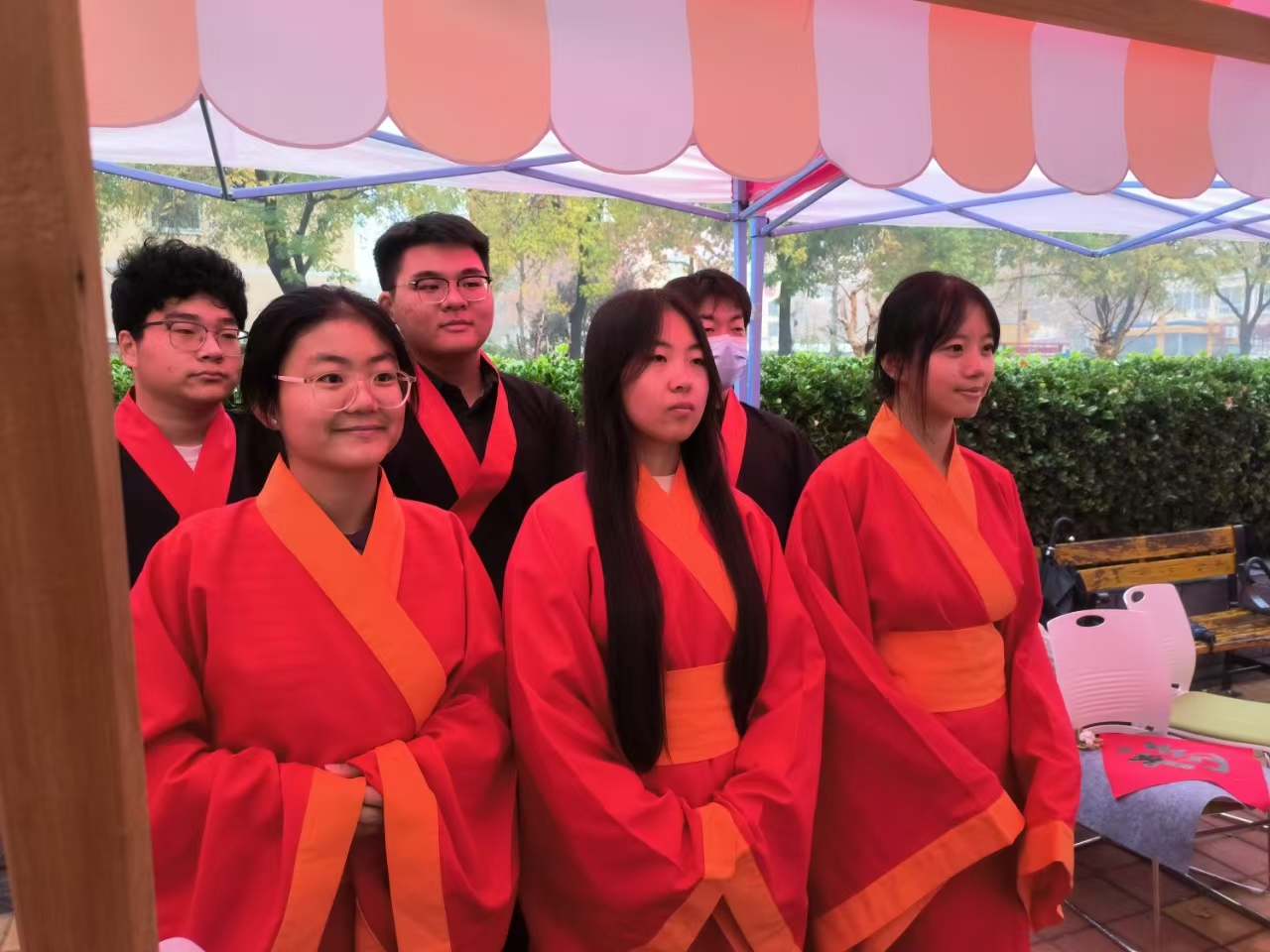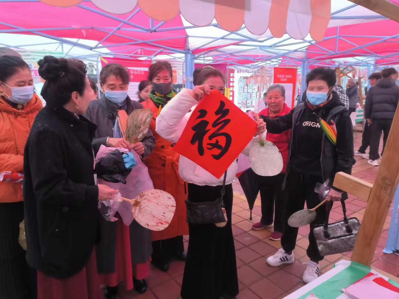 活动伊始,同学们首先为社区居民吟诵了《诗经》中的名篇《卫风·木瓜》:借此向居民传达了珍重情意永相好的美好愿望,“投我以木瓜,报之以琼琚。”高亢嘹亮的嗓音和充满活力的表演成功赢得了社区居民的阵阵掌声,连绵不绝。吟诵表演完毕后,同学们还为社区居民进行了书法展示,同学们凭借精湛的书法技艺在一张张红纸写下一个个“福”字,并免费赠与社区居民,寓意“福荫庇护,心想事成”。此举不仅帮助社区居民进一步感受到了书法文化的博大精深,更烘托渲染出文学院的传统文化氛围和人文关怀,获得了社区居民的一致好评。