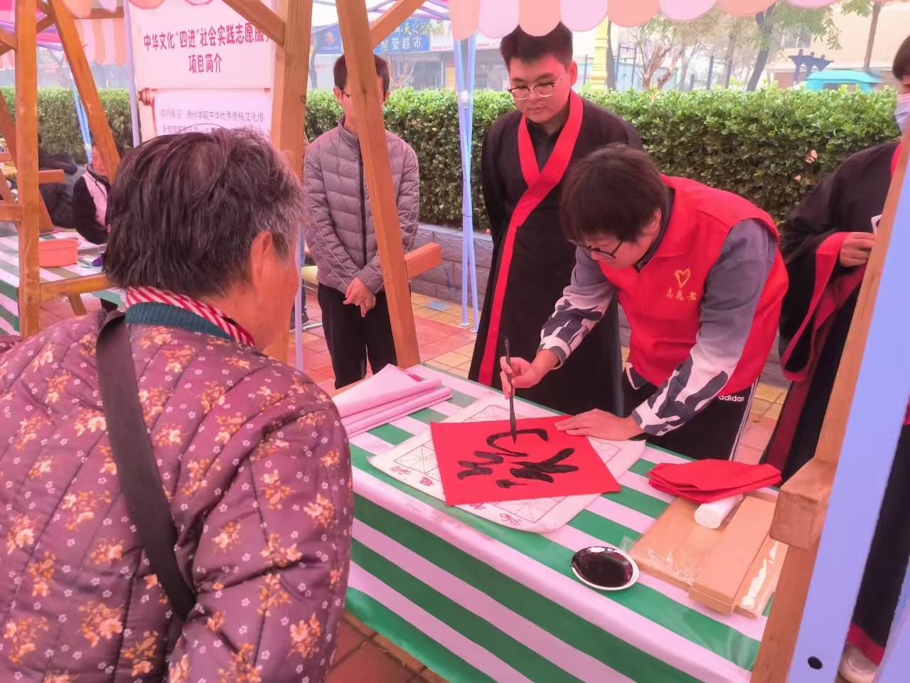 通过参与“志愿服务大集”社会实践项目宣传活动,不仅鼓舞了同学们参与社会实践活动的热情,更重要的是借此活动帮助社区居民对书法文化、吟诵文化等中华文化有了进一步的了解,展示出来我院学子精益求精、励志博学的良好精神面貌。