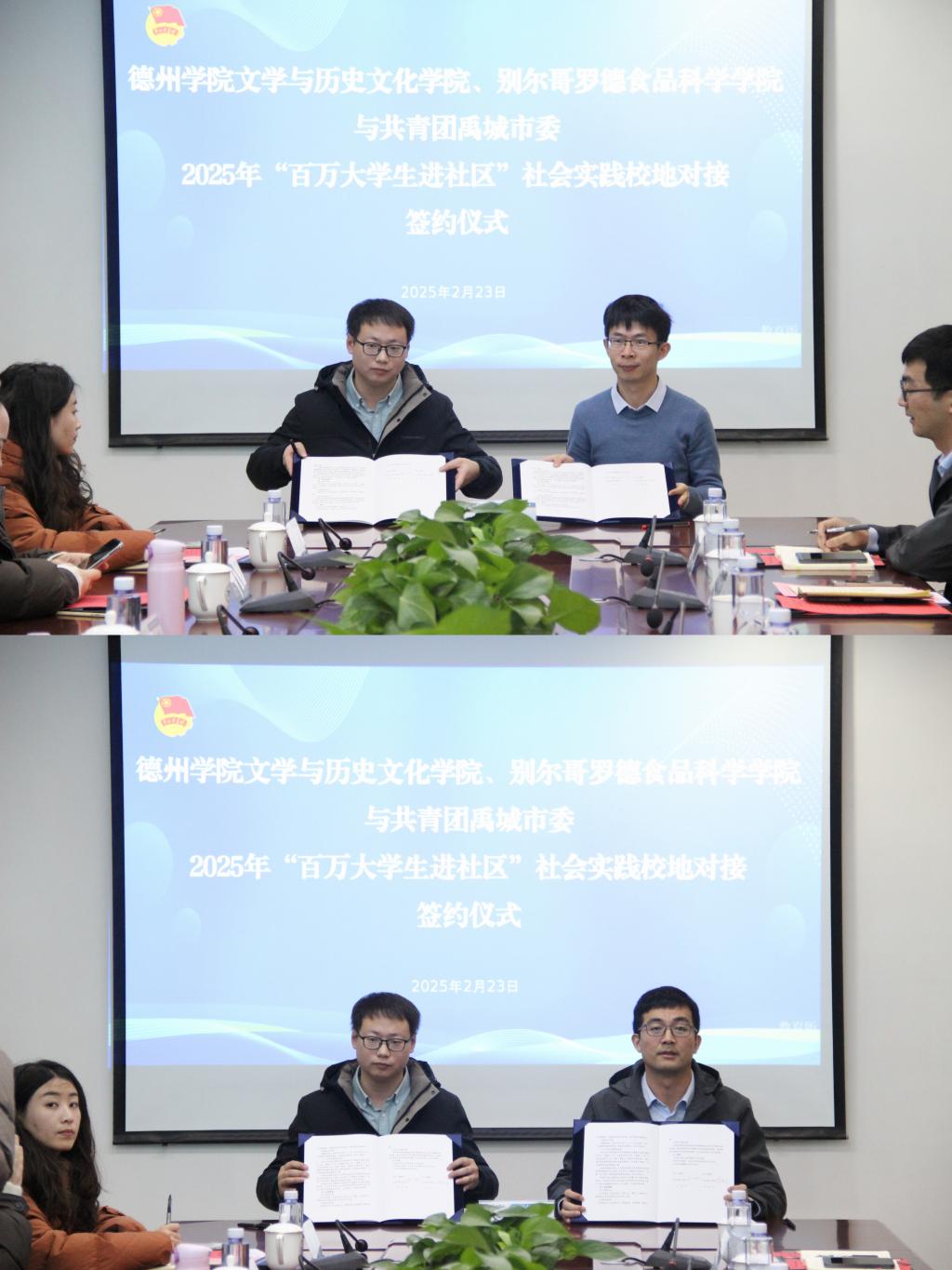 为深入学习贯彻习近平总书记关于青年工作的重要思想,加强校地共青团合作,促进校地资源共享、优势互补,进一步推动“百万大学生进社区”社会实践活动走深走实,2月23日 ,德州学院а√最新版天堂资源在线、别尔哥罗德食品科学学院与共青团禹城市委联合举行了“百万大学生进社区”社会实践校地对接座谈交流会,并在现场进行了签约仪式,为校地合作按下“加速键”。