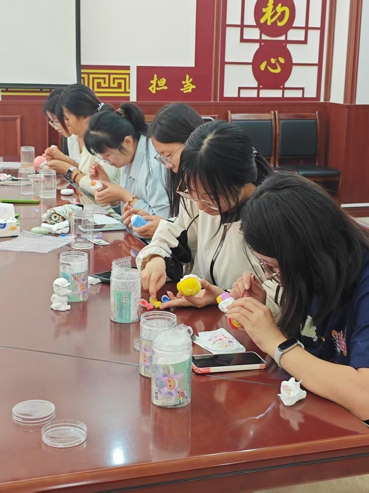 活动当日,现场氛围温馨而活跃。主持人首先介绍了本次活动的内涵及大体流程,让参与者对活动有了清晰的认识。随后,为每位参与者发放了石膏娃娃素体、颜料、画笔等工具,大家精心挑选颜料,在石膏娃娃上尽情挥洒想象,用色彩和线条勾勒内心世界。参与者们沉浸在创作中,将心中的美好愿景融入笔下,有的描绘出色彩绚丽的动物玩偶,有的用明快的色调勾勒出可爱的卡通形象,还有的选择淡雅的色彩,赋予石膏娃娃宁静温柔的气质,一个个原本素白的石膏娃娃变得色彩斑斓、个性十足。创作结束后,参与成员纷纷展示自己的作品,并分享创作思路和感受,在倾听与交流中,进一步拉近了彼此的距离,实现了心灵的深度交流。