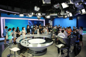 ▲签约仪式后,德州学院文学与新闻传播学院新闻学专业的师生参观德州广播电视台融媒体中心。