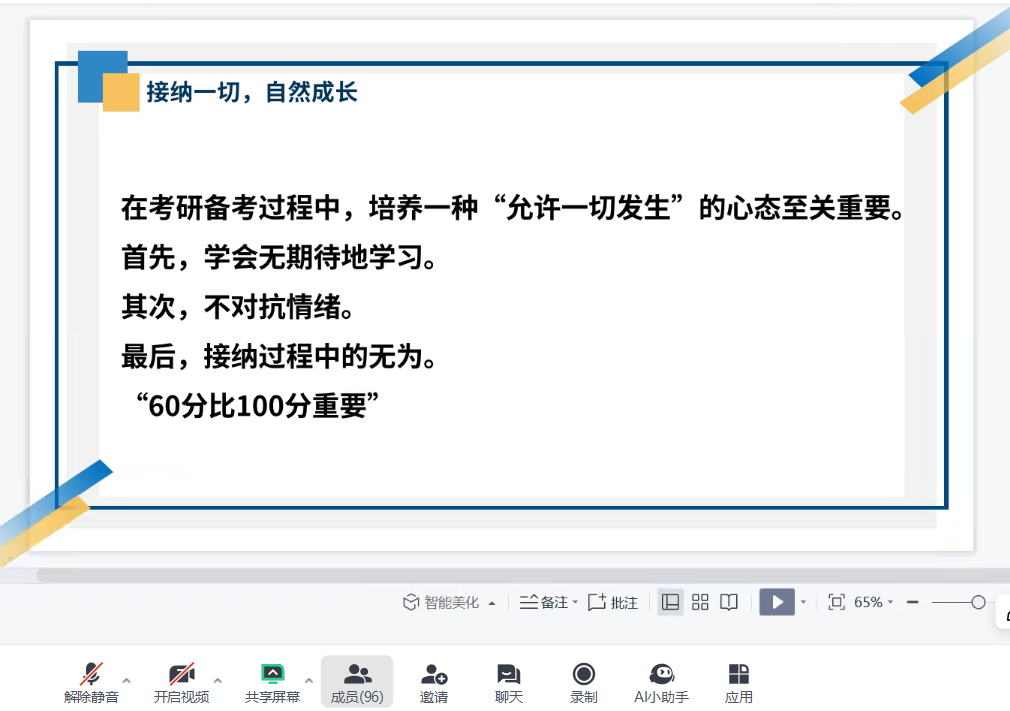 此次考研复试经验分享活动为我院学子坚定信心、明确备考方向,不仅是知识与技巧的传递,更是朋辈之间精神的鼓舞,值此寒假之际,学院重视升学就业工作,多措并举,充分发挥“传帮带”作用,助力考研学子顺利上岸,为毕业生成长成才保驾护航。